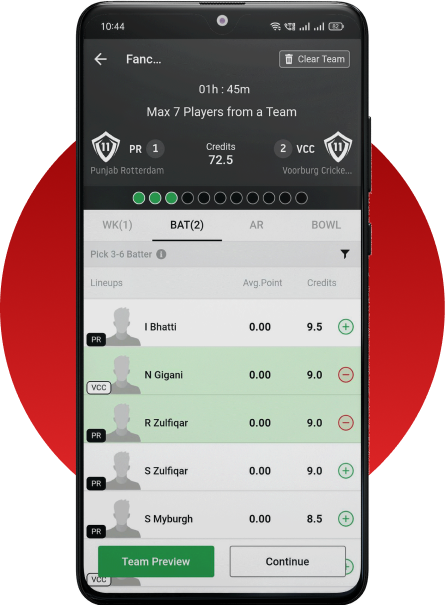 Virtual11 is played by using your sport knowledge and skill. You can pick your own team made up of real players for Cricket, Football. Create your team within a maximum budget of 100 credits. Your team earns points based on your chosen players' performance in the real-life matches. It's time to showcase your skill and go for glory!