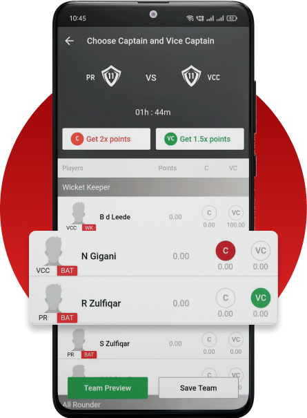 After creating your Virtual11 team, choose a Captain & Vice Captain for the team.